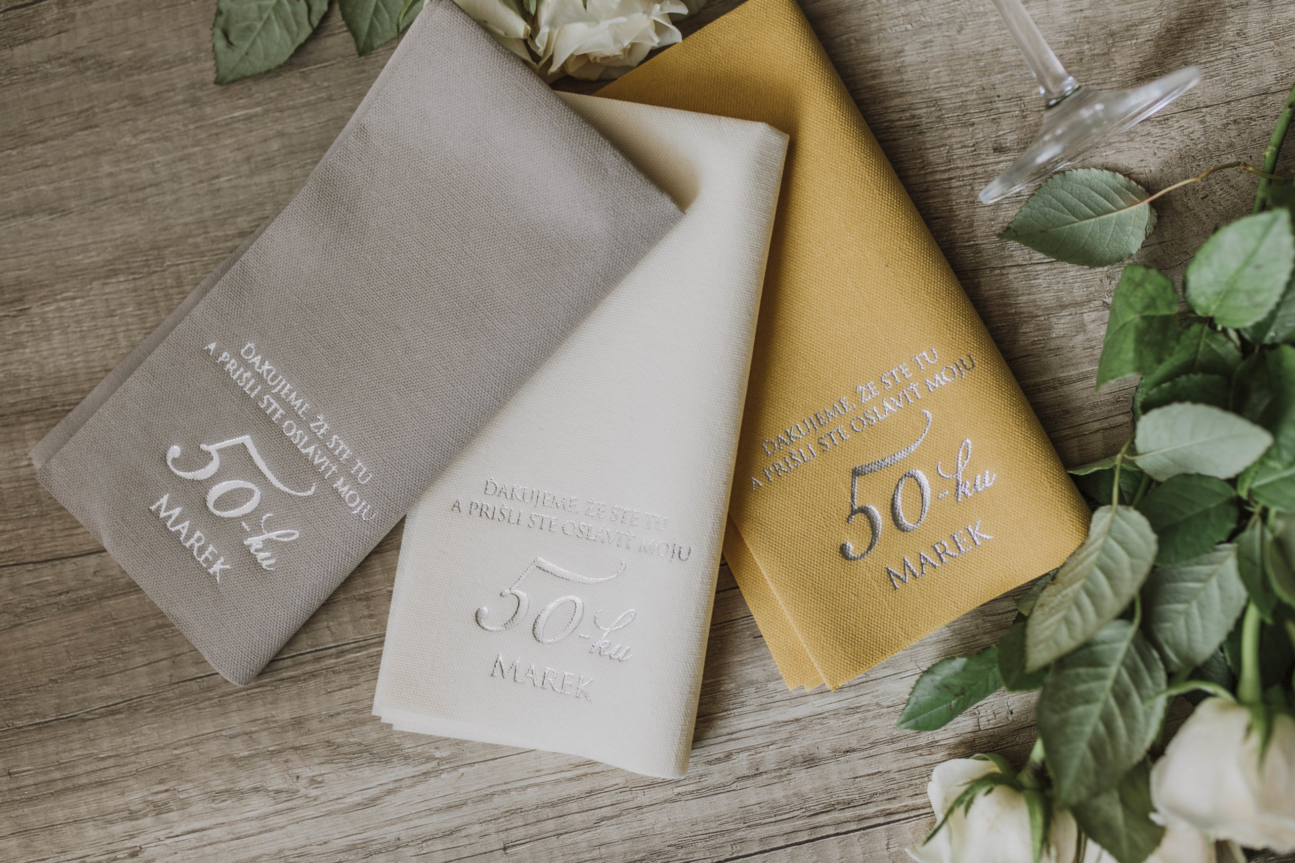 Personalized Dinner Soft Linen napkins. These large napkins are perfect complement for your party table. You can create your own look with many of our pre defined designs. Custom design is also possible.