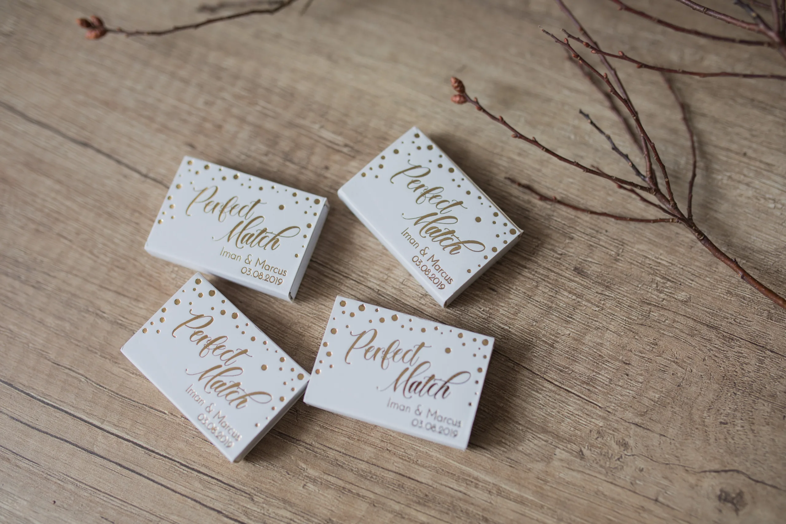 These very stylish and personalized matchboxes will for sure “light up” any occasion. Personalized matches are perfect favors for your guests. Weddings, reunions, graduations, mitzvahs and more, surprise your guests with original and memorable messages. If you are planning an outdoor wedding you can use them with candles or sparklers. There are endless possibilities!