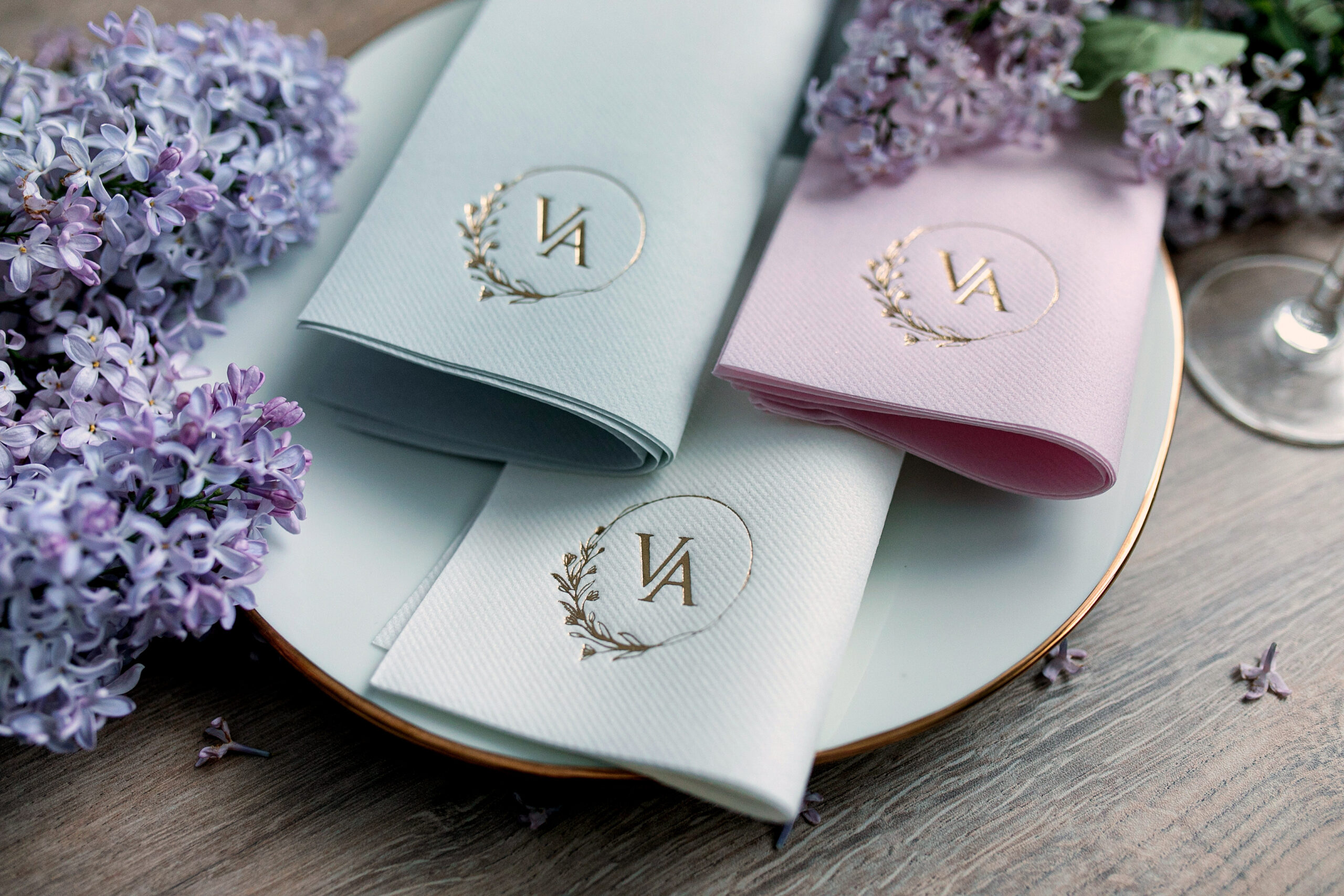 Personalized Dinner Soft Linen napkins. These large personalized napkins are perfect complement for your wedding table. You can create your own look with many of our pre defined designs. Custom design is also possible.