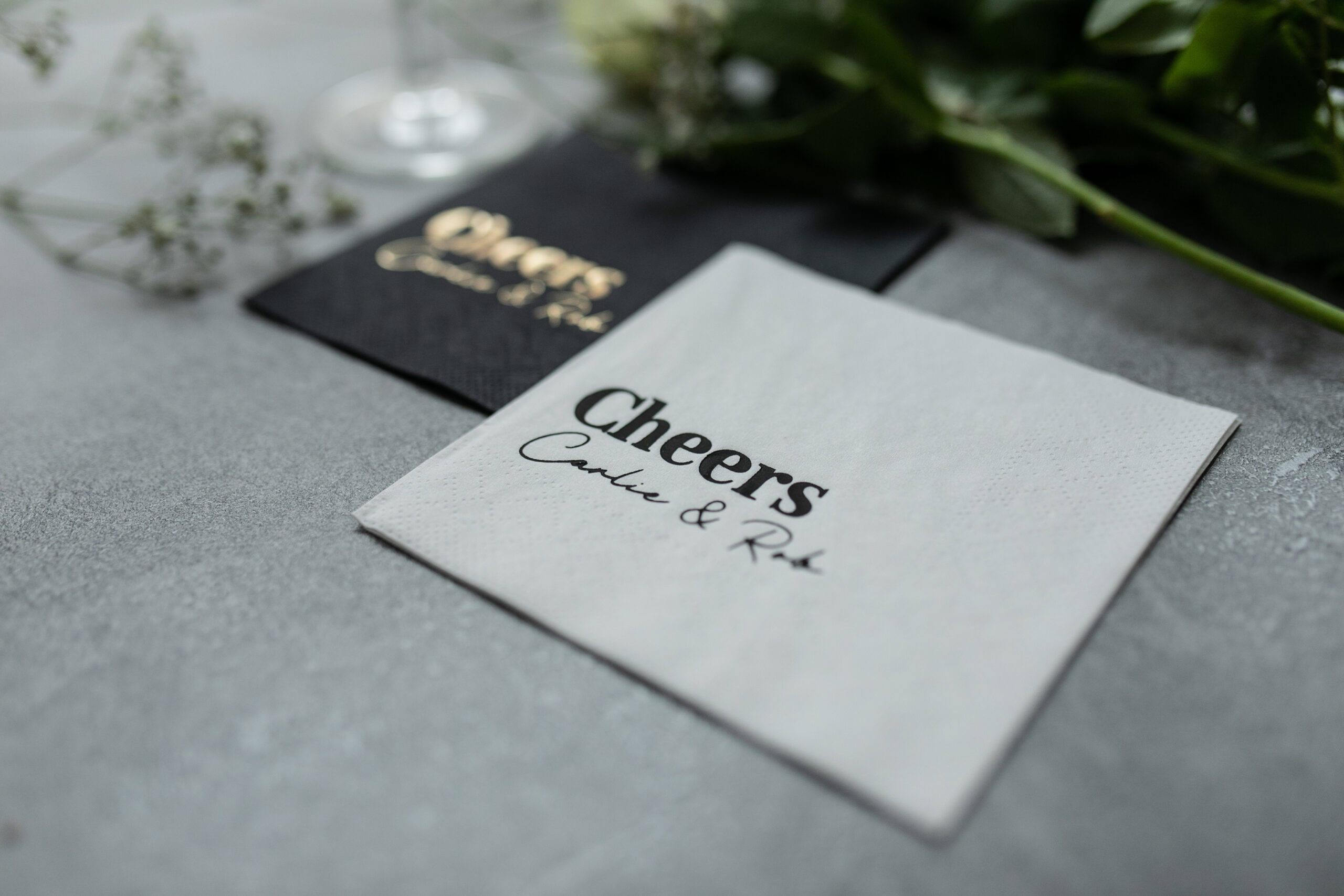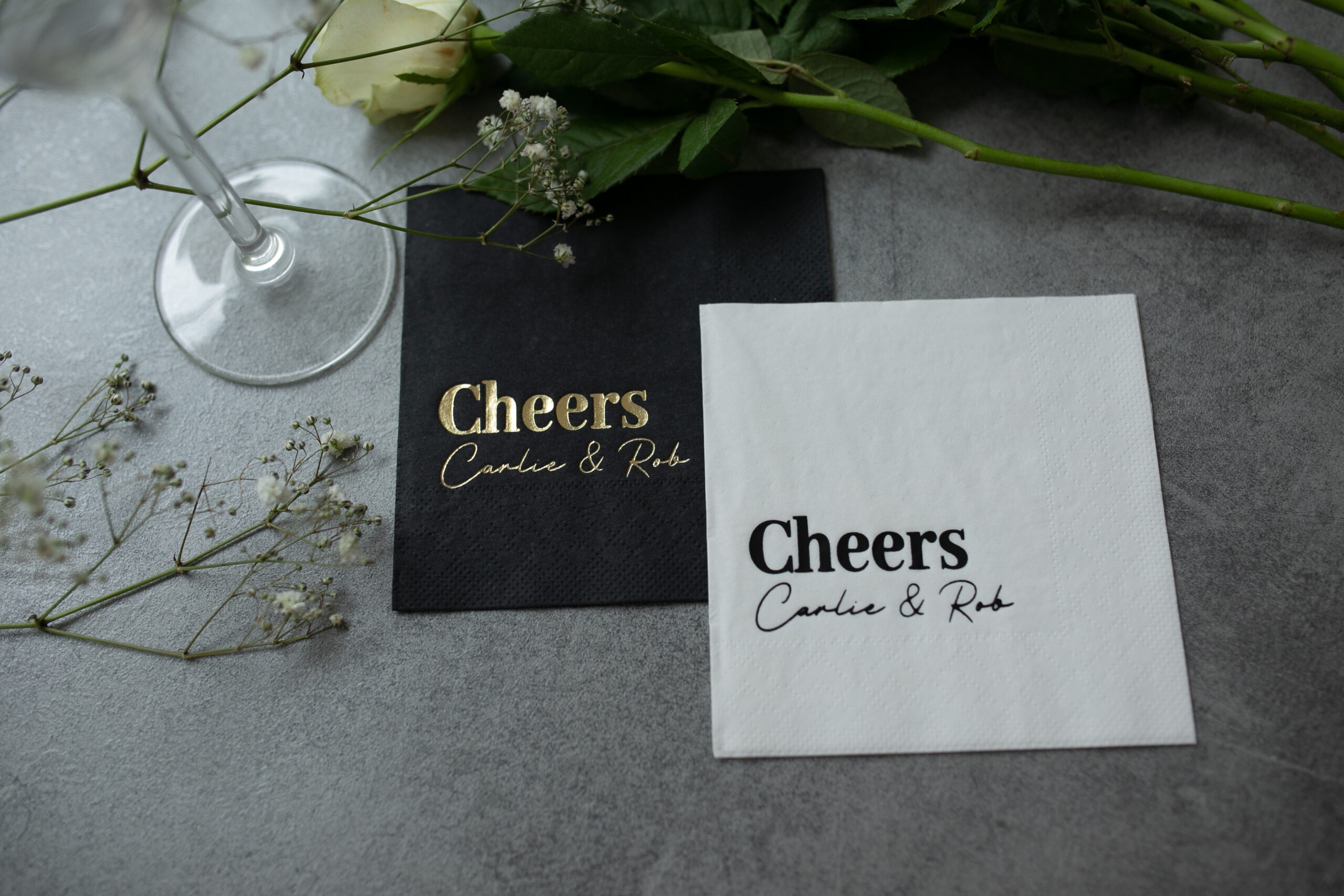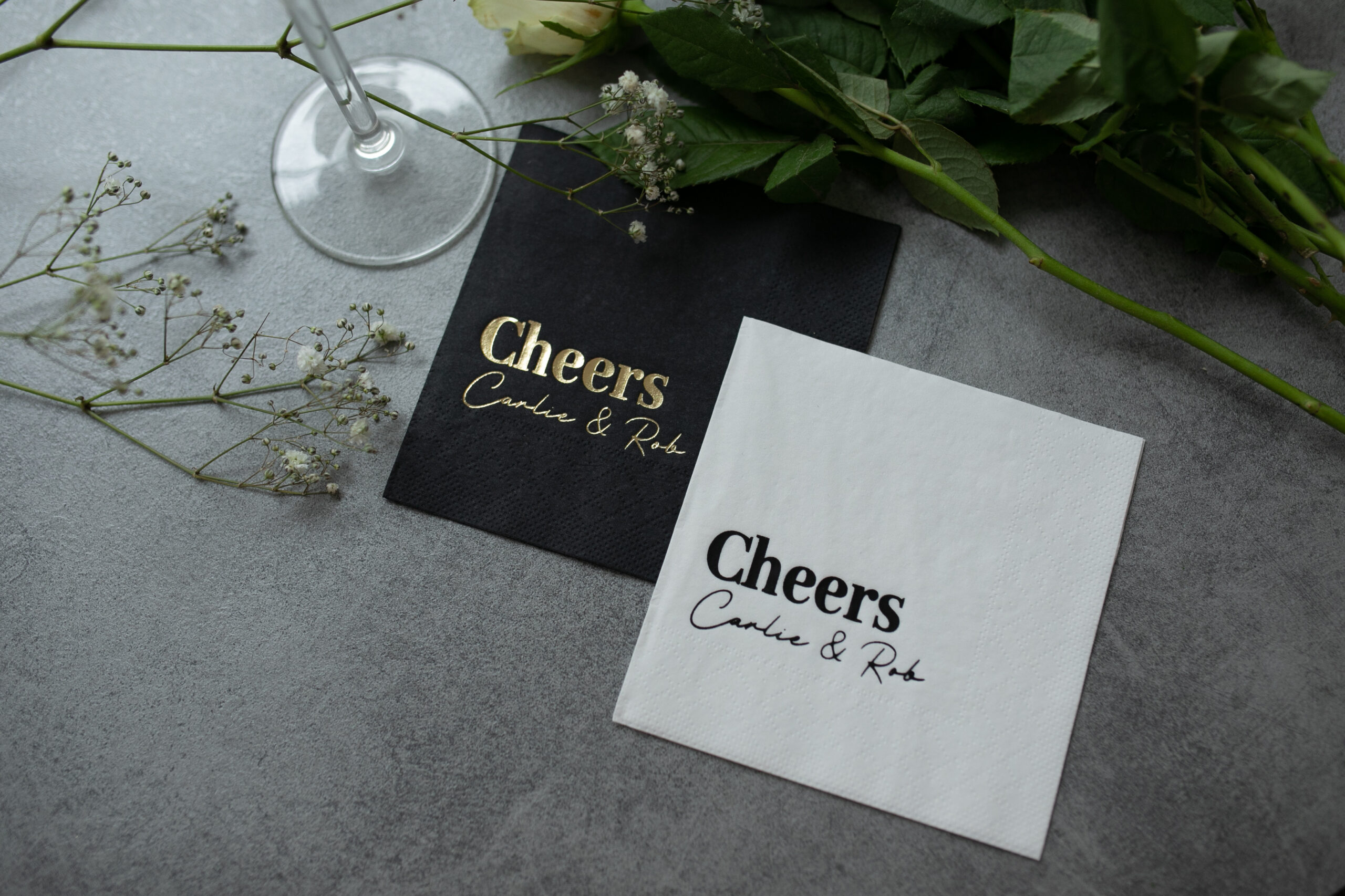 Make it the best day ever with these personalized paper napkins for wedding. Lunch or cocktail format is available. These custom napkins are a stylish way of adding a personal touch to your wedding tableware.