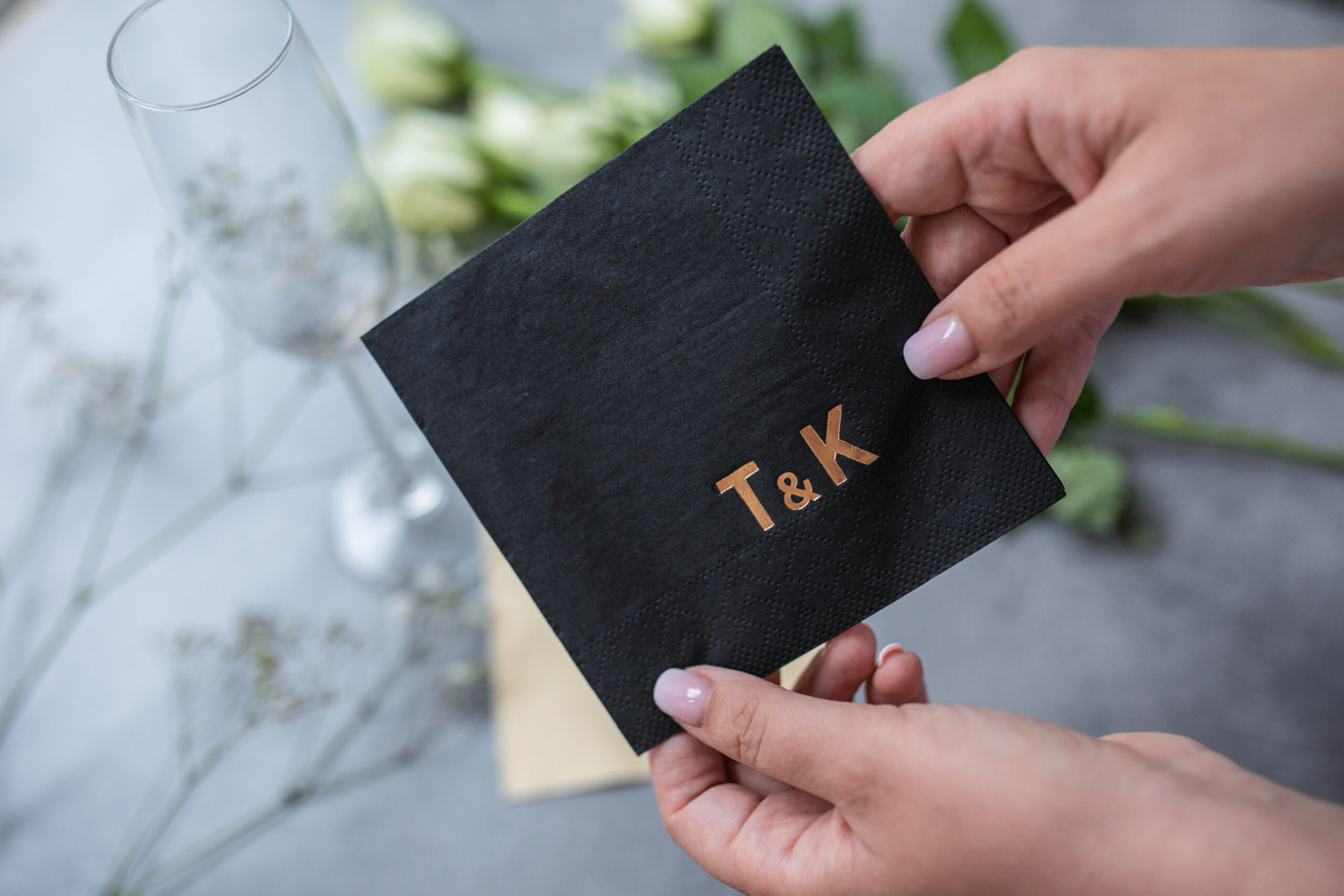 Make it the best day ever with these personalized paper napkins for wedding. Lunch or cocktail format is available. These custom napkins are a stylish way of adding a personal touch to your wedding tableware.