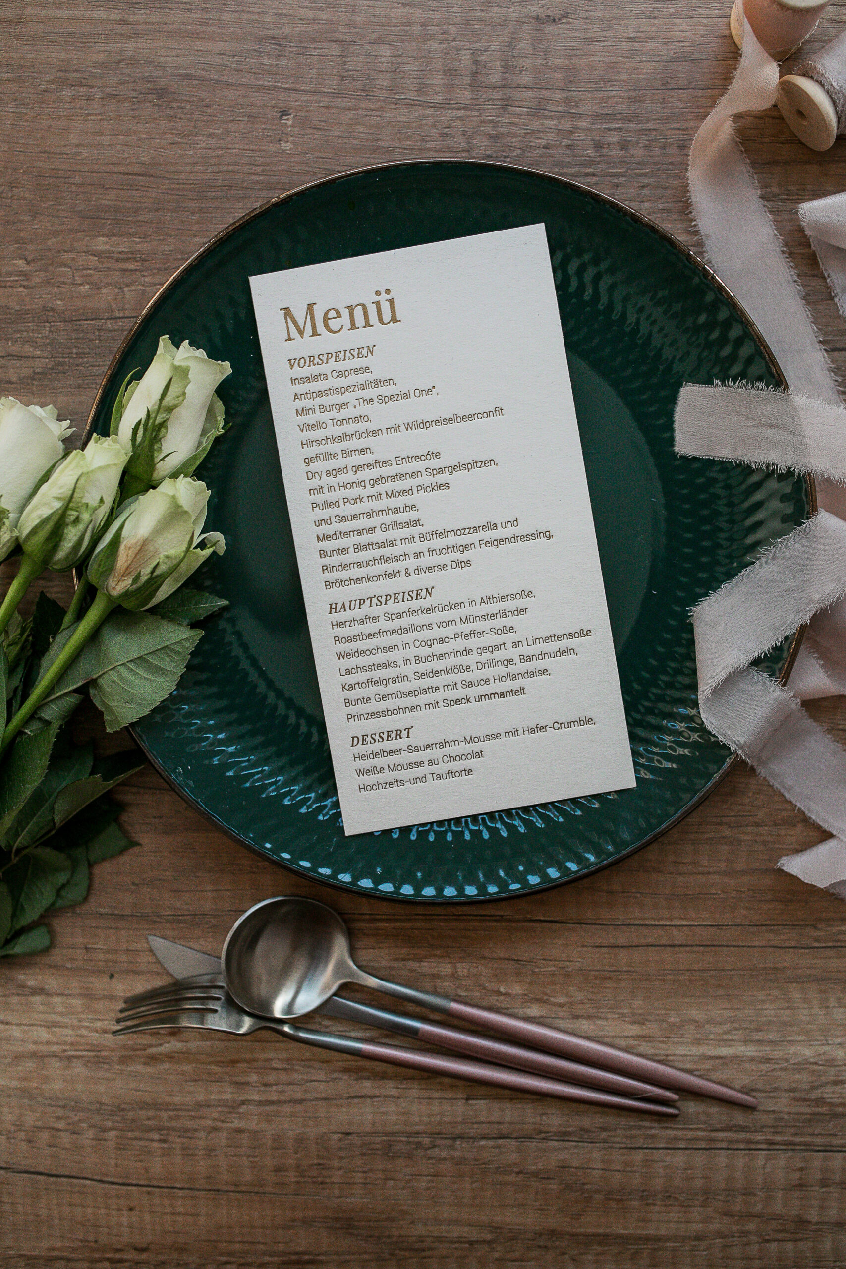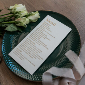 Letterpress Wedding Menu Card. Individually Letterpressed with real foils on a premium quality card (520gsm-600gsm).